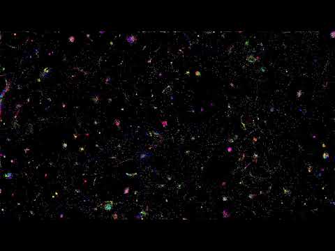 This video shows a 4K render of my MGA-Q particle-field simulation engine (v2.2). It uses a dual-pass OpenCL solver implementing modified gravity, phase coupling, exponential screening, special-relativistic gating, and wake-based feedback. The simulation includes mass-dependent clumping and fully mass-conserving fragmentation. Acceleration between particles is computed using the MGA-Q force model: a_i = SUM over j!=i of: G * m_j * (1 / sqrt(r_ij^2 + eps2)) * exp( - (r_ij / tau0)^alpha ) * cos(phi_j - phi_i) * r_hat_ij Phase evolution includes drift, coupling, and second-order history terms: dphi_i/dt = omega + 0.1 * (phi_i - phi_prev) + * (phi_prev - phi_prev2) + SUM over j!=i of [ k * sin(phi_j - phi_i) / (1 + r_ij) ] Special-relativistic gating dampens the acceleration at high velocity: a_i *= (1 - (|v_i| / c_speed)^2) ^ alpha_sr Wake-based feedback reinforces acceleration based on motion: wake_i(t+1) = gamma * wake_i(t) + (1 - gamma) * |a_i| a_i *= (1 + * tanh(0.1 * wake_i)) Mass-dependent collision radius matches the renderer exactly: R(m) = 2 * (0.6 + 0.4 * sqrt(m)) Particles merge when their radii overlap, and extremely massive particles fragment into multiple smaller children while conserving total mass. Snapshots are exported to CSV at fixed intervals and rendered at full 4K resolution to create this video.