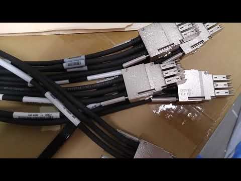 Denise demonstrates how to unpack and interconnect the components of two stacked Cisco 3750X switches.