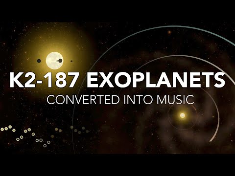 The 4 planets of K2-187 were discovered by looking for slight dips in the brightness as each one passes in front of their star (the 'transit' method). This data was collected by the Kepler Telescope's K2 mission and we have converted every measurement into a musical note by assigning the dimmer measurements to lower notes. We used the harmonic minor scale to match the actual harmony that these planets produce when their motion is converted into musical pitches (see link below). Although many transits can be easily seen and heard, some are hidden by the star's own natural variability making planet detection a tough task, especially for the smaller planets (the innermost planet is only 1.3 times larger than Earth). The entire piece represents about 75 days of observation with a measurement being taken every 30 seconds. Listen to the real harmony of K2-187: This system's validation was published in November 2018 by J. Livingston et al: Created by Matt Russo, Andrew Santaguida, and Dan Tamayo