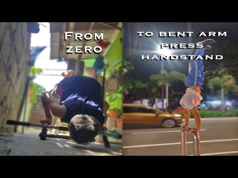 PDF: In this video I will show you the exercises that helped me get the bent arm press to handstand Index: Requirements: 00:25 Variations: 0:47 Exercises: 1. Handstand Press Negatives: 1:28 2. Bent Arm Tuck Planche or Bent Arm Stand: 2:00 3. Body Raises: 2:51 4. Overhead Pressing: 3:24 5. Assisted Handstand Press: 4:24 Press to Handstand demo: 5:19 Technique: 6:11