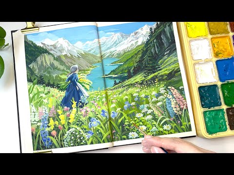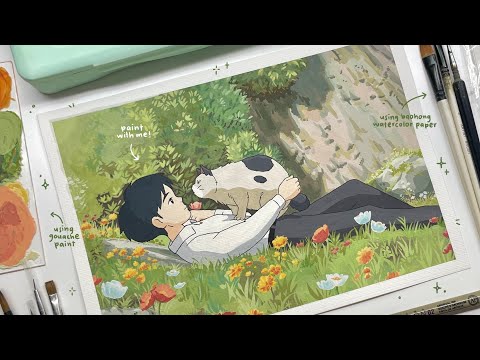 social and shop @gazoostudio on instagram @gazoostudio on tiktok shopee indonesia : gazoo studio time stamps : preview 0:00 cleaning gouache palette 0:52 sketch and painting process 1:23 finishing and final result 13:56 materials that i used on this video : himi miya jelly gouache 18 colors v-tec cutting mat size A4 22x30cm faber-castell econ 0.5 mechanic pencil bomeijia artist brushes, filbert weizhuang and lyra giotto paint brushes paper tape baohong watercolor paper 300 gsm size A4 you can find them all on online shops or offline art supplies store music : by demon gummies thankyou for watching! if you have any video, drawing or painting recommendations, let me know, leave a comment! and have a good day🤍