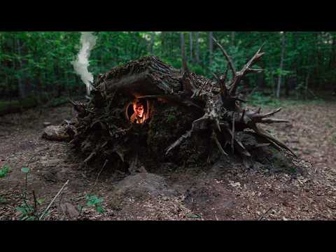 I went hiking along a forest river to visit the Dragon I found in the winter. The weather and spring forest atmosphere were beautiful, I decided to build a shelter of logs and moss under the root of a fallen pine tree and spend the night in the forest. I cooked dinner on a bonfire. It was an incredible hike! MY INST: Shelter from heavy Rain and Snow: Moss Shelter: Overnight stay in the Abandoned House: A reed shelter in the middle of a frozen lake:
