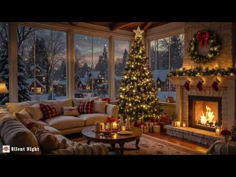 Warm Fireplace Ambience 2025 | Snow Christmas Night with…