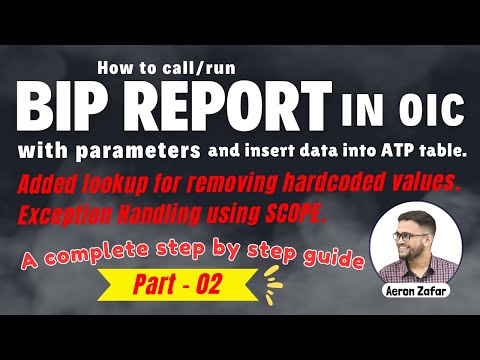Steps: 1. Get BIP Report Details from fusion ERP. Report Name, Path, Parameters & Output Format 2. Test BIP Report using SOAP UI. 3. Create SOAP connection to invoke BIP in OIC. 4. Create ATP connection to insert BIP data. 5. Create Opaque schema xsd file to convert SOAP response (report byte) base64 to file reference. 6. Create App-Driven integration. 7. Run integration to test. Integration flow: 1. Add REST trigger endpoint to configure request and response payload. 2. Invoke SOAP API to call BIP Report. 3. Convert SOAP base64 response into file reference. 4. If data in BIP report file, then read the file data, else map response payload end the flow. 5. Iterate the loop over BIP report read data. 6. Insert BIP report data into ATP table. 7. Map response payload and end the flow. Join WhatsApp group for more updates and queries : Join for more update: WhatsApp: Telegram: 1. Create BI Report in Oracle Cloud (Without Parameter) 2. Create BI Report in Oracle Fusion with Parameter 3. Create BI Report in Oracle Fusion Application with LOV Parameter #OIC #integration #oracleintegration #integrationReport