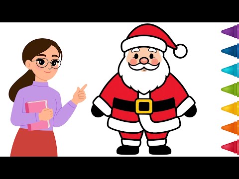 How to Draw Santa! Let's draw! Kids Art: learn basic coloring and painting for kids and toddlers. #kidslearning #santa #santaclaus #art #drawing #christmas #learning #shading