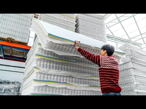 스프링 매트리스 대량생산 과정. 한국의…
