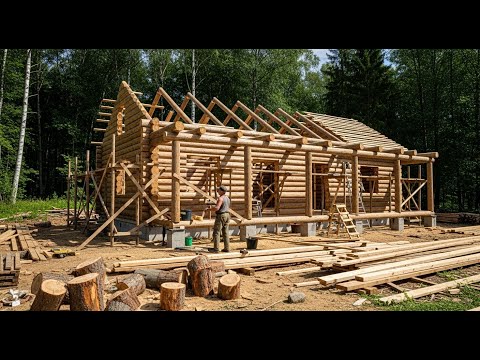 Building a Cozy Tiny Log Cabin Alone in the Canadian…
