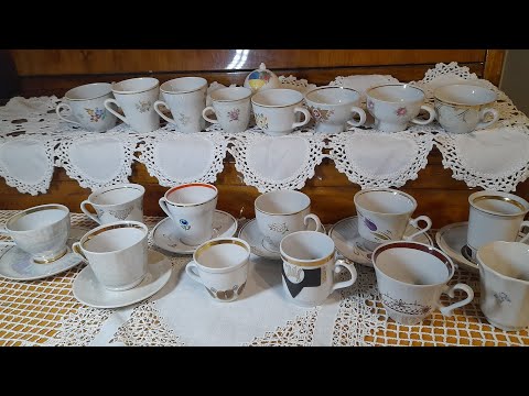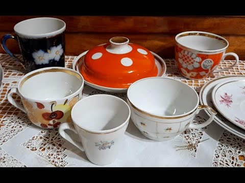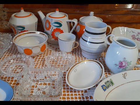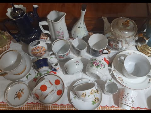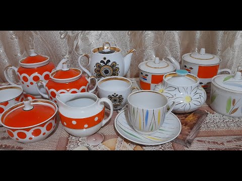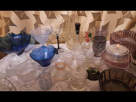 вироби з ризького сервізу Дайна, підстаканики на чай, стрийська вазочка з кольорового скла, бориславська кавова пара А також сьогодні коротко покажу полички з колекцією