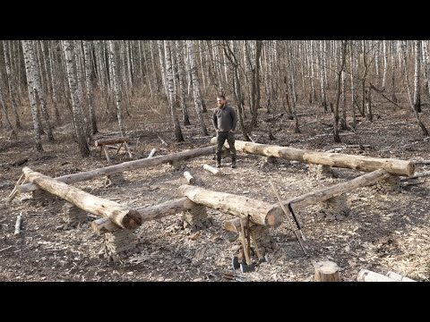 #logcabin #building #handwork today i want to make a floor frame for my traditional log cabin in the wild forest, using only hand tools and technologies of our ancestors, join the work it will be interesting!