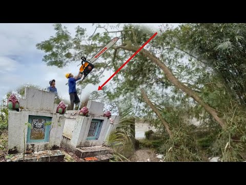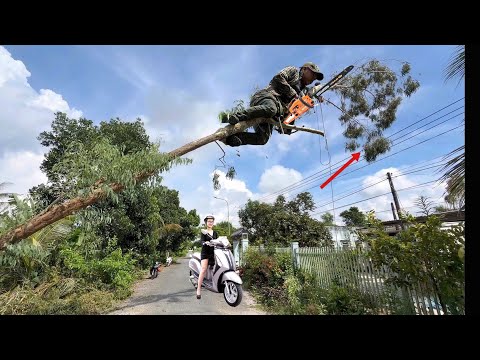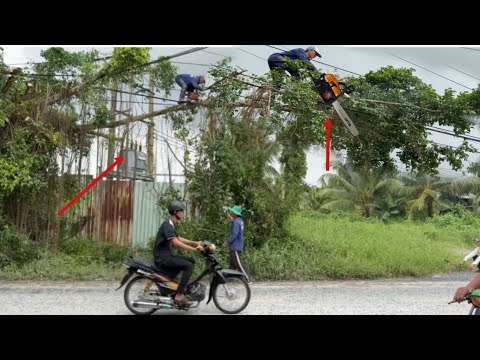 Cưa Cây Rừa Cổ 62 Năm Tuổi Dây Điện Quấn Như Màn Nhện.Trời Mưa Dây Điện Nổ Thợ Cưa Bỏ Chạy
