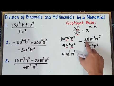 This algebra video tutorial explains how to divide polynomials by monomials in addition to dividing polynomials by binomials using long division. Algebra - Free Formula Sheets: Polynomials - More Video Lessons: Final Exam and Test Prep Videos: