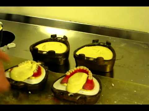 Flasks a maxillary-mandibular denture for complete denture processing. Shows the different steps in pouring the plaster and setting the master cast. Part 1 of 4. Orig. air date: OCT 10 73 This is part of the collection at: