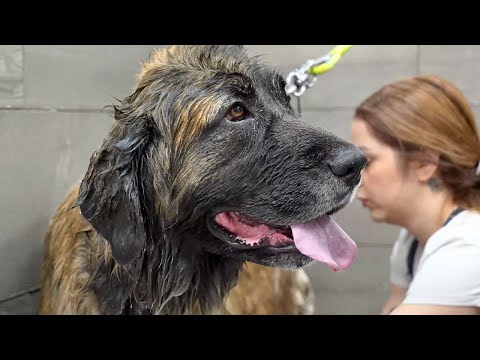 This Newfoundland Dog Was TOO Big For The Grooming Table...Literally.