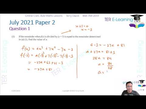 CSEC Add Maths - Remainder Theorem