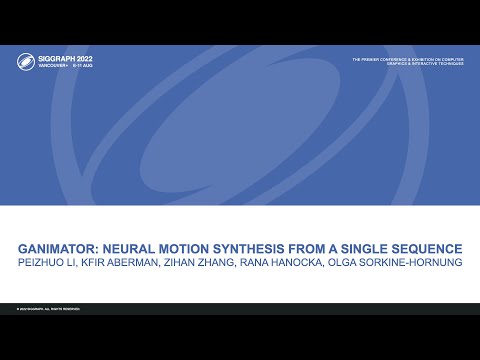 Peizhuo Li, Kfir Aberman, Zihan Zhang, Rana Hanocka, Olga Sorkine-Hornung. GANimator: Neural Motion Synthesis from a Single Sequence (SIGGRAPH 2022) Project page: Code: Abstract: We present GANimator, a generative model that learns to synthesize novel motions from a single, short motion sequence. GANimator generates motions that resemble the core elements of the original motion, while simultaneously synthesizing novel and diverse movements. Existing data-driven techniques for motion synthesis require a large motion dataset which contains the de- sired and specific skeletal structure. By contrast, GANimator only requires training on a single motion sequence, enabling novel motion synthesis for a variety of skeletal structures e.g., bipeds, quadropeds, hexapeds, and more. Our framework contains a series of generative and adversarial neural net- works, each responsible for generating motions in a specific frame rate. The framework progressively learns to synthesize motion from random noise, enabling hierarchical control over the generated motion content across vary- ing levels of detail. We show a number of applications, including crowd simulation, key-frame editing, style transfer, and interactive control, which all learn from a single input sequence.