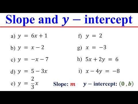 Find the slope and y intercept of each line from an…