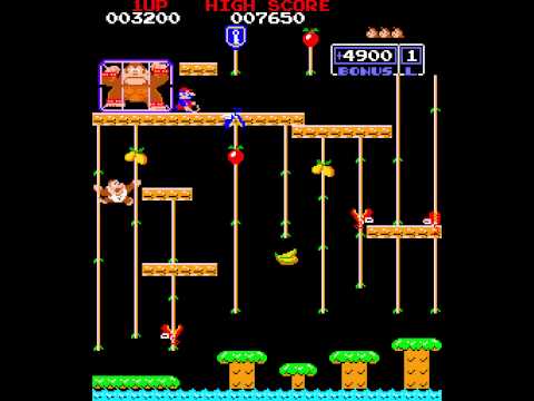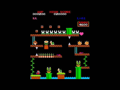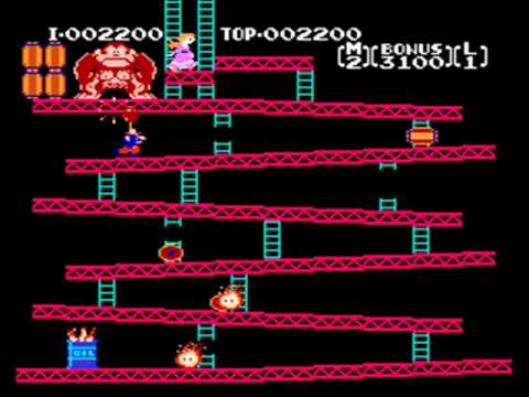 This is emulated with MAME +. The American version only has the 1st and last levels, but the Japanese version also has the 2nd and 3rd. The name of this ROM is "Japan set 1". There were a couple mistakes, but this was quick to complete compared to my many other videos. I'm sorry if my lack of skill in this game doesn't please you enough. HOW HIGH CAN YOU GET? LEVEL 1: 25m: Jump over barrels, or smash them with hammers, and climb ladders to reach Pauline. LEVEL 2: 50m: Reach Donkey Kong's floor by climbing moving ladders and passing conveyer belts while avoiding fires, pies, and Donkey Kong, himself. LEVEL 3: 75m: Use elevators and ladders while avoiding fires and springboards to reach Pauline's floor. LEVEL 4: 100m: Use ladders to climb and break all of the pegs, while avoiding or destroying puffy flames with hammers.. Once you break all of the pegs, Donkey Kong will fall, and Jumpman, . Mario, will be reunited for good. And then the game starts RIGHT over again... *sigh* -------------- In Levels 2 - 4, you can collect items for extra points. These are Pauline's sunhat, umbrella, and purse. The Bonus at the top-right corner of the screen is also a time limit. 1 second of time multiplied by 100 represents the Bonus points you get after beating the level. If the Bonus hits 000, you die! In Levels 1 & 4, hammers will let you break barrels in Level 1, and flames in Level 4 for a few seconds. However, you can't jump with them, and you can't climb ladders with them. Because of how they're set up in those levels, you can't even use them to hit Donkey Kong if you tried. Notice how the flames in Level 4 turn blue when you grab a hammer. It's as if you were Pac-Man and they were Ghosts. American NES Version: American Arcade (US set 1) Version: -------------- WOW! Over 39,000 views! I wasn't expecting this to do so well. Thanks, everyone! -------------- HOLY CRAP! Over 132,000 views! I wonder if it has to do with that... particularly infamous movie known as Pixels, hmmmm...? Oh well. Love it or hate it, if you're trying to figure out where Donkey Kong came from in that movie, look no further. The things you see the characters do to get through this game in that movie may end up being different from what you see out of the game itself, here. -------------- OVER 424,000 VIEWS?! Wow... Thanks, Pixels. -------------- 755,000+ VIEWS! -------------- 834,000+ VIEWS!! -------------- 943,000+ VIEWS!!! -------------- OVER 1 MILLION VIEWS!!!! I CAN'T BELIEVE THIS! THIS IS NO DOUBT MY HIGHEST-VIEWED VIDEO EVER! -------------- OVER 1.5 MILLION VIEWS!!!!! 4/3/16 UPDATE: Since this video's proven to be an extremely popular video thanks to the game's appearance in Pixels, I may consider making quick playthroughs of some of the other arcade games that also showed up in that movie. I'm not really interested in seeing the movie, itself, though, but I might change my mind later. -------------- OVER 2 MILLION VIEWS!!!!!! And not only that, as of this post of 7/9/16, this, the original Donkey Kong arcade game, is now officially over 35 years old! CONGRATULATIONS! -------------- OVER 3.1 MILLION VIEWS?! How is this still going so well?! -------------- OH MY GOD, OVER 4.2 MILLION VIEWS?! -------------- 7.3 MILLION VIEWS! THIS IS STILL GOING?! -------------- AHHHH! 8.7 MILLION VIEWS!!! That's it! I'm planning a new playthrough of this game. And it will show off ALL of the levels with NO DEATHS! 7/7/18 UPDATE: Check out my newest run of the American version, here!: ---------- OVER 10 MILLION VIEWS?! HOW IS IS THIS EVEN POSSIBLE FOR ME?! ---------- 7/9/21 UPDATE: OVER 13 MILLIONS VIEWS! This date marks the 40th Anniversary of Donkey Kong! (And by extension, Mario the Jumpman!) Thanks for watching, everyone!