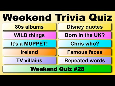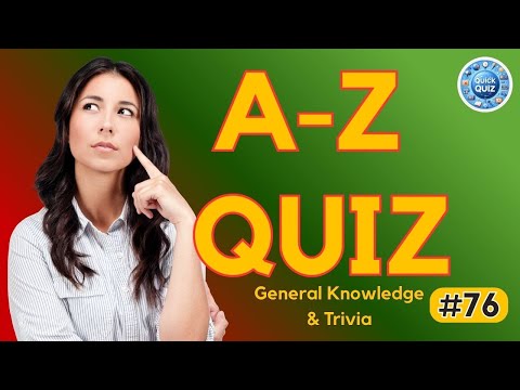 General knowledge and trivia quiz with 26 questions all non multiple-choice. Each answer starts with a letter in the alphabet, the answer to question 1 begins with A, question 2 begins with B, down to 26 which will begin with the letter Z. There is good mix of general knowledge and trivia questions (some are difficult), I hope you enjoy and good luck. There is audio throughout reading out the questions and answers (in English). 00:00 How to play the game 00:16 Quiz question where the answer begins with the letter A 00:33 Quiz question where the answer begins with the letter B 00:51 Quiz question where the answer begins with the letter C 01:10 Quiz question where the answer begins with the letter D 01:27 Quiz question where the answer begins with the letter E 01:45 Quiz question where the answer begins with the letter F 02:02 Quiz question where the answer begins with the letter G 02:23 Quiz question where the answer begins with the letter H 02:40 Quiz question where the answer begins with the letter I 02:58 Quiz question where the answer begins with the letter J 03:16 Quiz question where the answer begins with the letter K 03:35 Quiz question where the answer begins with the letter L 03:55 Quiz question where the answer begins with the letter M 04:14 Quiz question where the answer begins with the letter N 04:31 Quiz question where the answer begins with the letter O 04:49 Quiz question where the answer begins with the letter P 05:06 Quiz question where the answer begins with the letter Q 05:24 Quiz question where the answer begins with the letter R 05:41 Quiz question where the answer begins with the letter S 05:59 Quiz question where the answer begins with the letter T 06:17 Quiz question where the answer begins with the letter U 06:35 Quiz question where the answer begins with the letter V 06:54 Quiz question where the answer begins with the letter W 07:13 Quiz question where the answer begins with the letter X 07:34 Quiz question where the answer begins with the letter Y 07:57 Quiz question where the answer begins with the letter Z 08:13 Bonus question where the answer begins with a number #trivia #triviaquiz #generalknowledgequiz