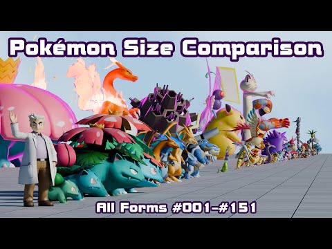 Presenting my new longest animation yet. It's been rendering since my first size comparison video. All the gen 1 Pokemon with all their forms in their true scale. (Or at least the size that the Pokedex lists them at.) Leave a comment if you'd like to see anything changed for future videos. Height sources: Bulbapedia Pokemon models and animations: Scarlet & Violet, Sword & Shield, Let's Go Pikachu & Eevee Oak model: Pokemon Masters EX Oak voice clips: Pokemon Snap Music (In order of play): Oak's Laboratory - Pokemon Snap Pokemon X&Y: Kanto Route 1 Remix by @The_Zame : Pokemon Red & Blue Come Along Arranged by @Pokestir : Pokemon S.S. Anne Theme Remix by @Luigigigas : Pokemon Cinnabar Island Theme Remix by @Luigigigas : Pokemon Heart Gold & Soul Silver Pallet Town Piano Cover by @The_Zame Pokemon Follow Me! / Professor Oak's Theme by @vchang3654 : Pokemon Sword & Shield | Dynamax Battle | EPIC ORCHESTRAL VERSION by @AetherandChaos : Pokémon Sword and Shield - Battle! Galar Gym Leader (Remix) by @The_Zame : Pokémon Sword and Shield | Dynamax Raid Battle Theme (Recreation) by @artho340 : Pokemon Professor Oak's Lab HGSS Let's Go Pikachu & Eevee Style by @Pokestir : Please read the channel description. If you want to get behind the scenes content and early looks at future projects consider joining the channel, supporting me on Ko-fi or alternatively checking out my design stores with vector and 3D designs on Redbubble or Teepublic.