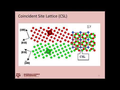 Most engineering materials are polycrystalline, with individual grains separated by grain boundaries. The mutual rotation of these grains disrupts the periodicity of the atoms at the grain boundary, resulting in higher energy compared to a perfect single crystal. However, for low-angle rotations, the boundaries can reduce this disruption by forming periodic arrays of dislocations. At higher angles of rotation, the destabilization of the grain boundary can be mitigated through the formation of Coincidence Site Lattices, characterized by specific “Sigma” values. This video, designed for materials science undergraduates, provides a brief overview of the formation and characteristics of these special types of grain boundaries.