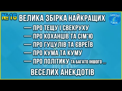 ТИЖНЕВА ЗБІРКА ВЕСЕЛИХ АНЕКДОТІВ ... Збірка Найкращих Анекдотів по-Українськи. ЖАРТИ -----------------------------------------x---------------------------------------- 🥰 Якщо Вам сподобався анекдот - підтримайте наші старання та український контент Вашим лайком 👍🏻 та підпискою на наш YouTube канал ► Також підтримайте наш новий Telegram канал, де Ви знайдете ще більше українських анекдотів в текстовому варіанті: +voWAK5p2BrJiZGM6 -----------------------------------------x---------------------------------------- ► Важлива інформація: ➞ Жоден анекдот чи жарт аж ніяк не має на меті когось образити, зачепити його честь та гідність, адже усі персонажі є випадковими, а ситуації вигаданими.