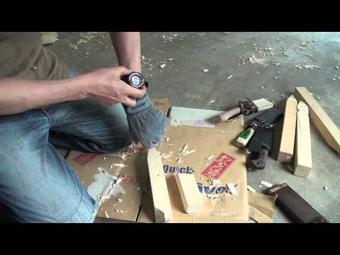 Please hit LIKE and Leave a Comment if this helped! It really helps my channel out. I recently went to an ax throwing joint in Portland, Oregon, @celticaxe (in the @HUBVideo1 location), and enjoyed it so much that I decided to figure out how to build an axe, hatchet, and knife throwing wood target lane at home so my family and I could throw hatchets, knives, and shovels (Russian Spetsnaz style). I liked the targets I saw at Celtic--they were made using 4x4 end grain in a checkerboard butcherblock style, so I figured why not do that at home? It was fairly easy and I kept the price down to about $130 for supplies. I bought lumber at the big box store, and set out making the wood target. I designed it to be a tripod standing approximately 7 feet tall with a 5' bullseye. Here is the gear I use at home: -Pre-built Axe or Knife Throwing Target: (if you don't want to build it yourself) -Cold Steel Throwing Ax/Hatchet: -Cold Steel Spetsnaz Shovel: -Gil Hibben Throwing Knives (Set of 3): (These affiliate links will take you to products that, if you purchase them, they will send me a VERY SMALL commission which helps me make more videos. Thanks!) Business Inquiries Email: mountainvids@ (subject: Inquiry from Youtube) BTW, I've gained a lot of throwing knowledge from some youtubers, including @AdamCeladin and @ItsWhateverKnifeandGun for no spin knife throwing, and @soulthrower for axe throwing. They're all aces! Transcript: Oh, hi. Let's show you how to make a throwing axe and throwing shovel target. What makes these targets really great is they're made with end grain. So, if you have a couple that's split out, you can always replace part of it without having to replace the entire target. What we're going to do is we're going to cut these up into 3 and 1/2 long pieces. So, I'm going to cut the first one at three and 1/2, mark it here, and cut it with a chop saw. You can use other saws, but I want to get this done sometime in my lifetime. So, cut this like this. And the hatchet or knives are going to go into the end grain here. So, I want it 3 and 1/2 in long. I'm going to be putting a stop in Okay. And then I'm going to put this one in here. Use a clamp here. Put it on the end here so doesn't get hung up on the blade. Next thing I'm need to do is I'm going to have to take all of these 4x4 pieces that I've cut and I'm going to lay them out on this half inch backer board so I can get an idea of the size and scope of this target. That target backer board is going to have a screw through each individual 4x4. If I need to replace them individually, I can just take that screw out and pop out the 4x4. I have a 2x4 frame around these. So, I'm going to offset this on the backer board by about 1 and 1/2 in on all sides. That's about the size I'm going to go for at the moment. So, the next thing I need to do is I need to cut out 2x4 framing is I'm going to cut these so we can frame it up. I'm making these out of pressure treated cuz it's going to the outside and I want the frame at least to hold it all together. So, along that line, I have a general idea of this design in my head, but as you can see, I'm kind of just making it up right now. So, we're going to make that frame. I'm going to cut these on the on the chopsaw. This these ones are going to be whatever the length of that is. And then these are going to cap this and underneath there cap that on the bottom. I cut this first piece to 36 in as three, four on both ends. Before I do that, I'm going to pre-drill. It's a good idea. So, I have this clamped, just a Harbor Freight cheapo CL clamp, and I'm going to I'm going to, pre-drill this with this drill bit. And then these are just timber kind of ledger screws, but you can use other just regular wood deck screws, too. I just want super heavy duty. Okay, so you're going to go pre-drill these. Then screw these in. And then one down there, one one two there, and then two on either end of those. Once you get the frame cut and everything screwed up, then you're going to take your backer board and you're going to mark it where Make sure you're not cutting through your your saw horses. I made kind of a grid by going okay halfway down these and then halfway down here, halfway down here will give me the the center of all these. So, that's 90 of these. So that should give me 90 centers for all these, right? Okay, so that that's 90 centers. I'm just going to screw in wherever these are. That's where I screw it into. And I use that to help me. And a pencil. All right. That's the last one. Through the power of editing. You didn't have to watch all that, but I had to do it. Center for this is going to be 5 ft from the floor to the center.