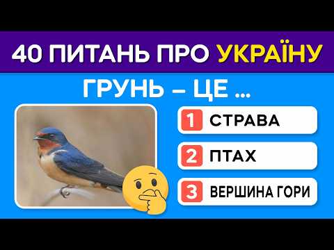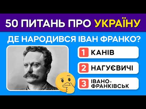 Наскільки добре ти знаєш Україну? 🌻 У цьому відео — 50 запитань про нашу країну: історія, географія, мова, культура, традиції та видатні особистості. Перевір себе або позмагайся з друзями! 📌 Як грати: ✅ Відповідай на запитання ✅ Підрахуй правильні відповіді ✅ Напиши свій результат у коментарях! Підтримай відео вподобайкою 👍 та підписуйся на канал 🔔, щоб не пропустити нові цікаві вікторини! #Україна #тест #вікторина #цікавіфакти #історіяУкраїни #знання