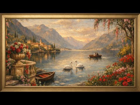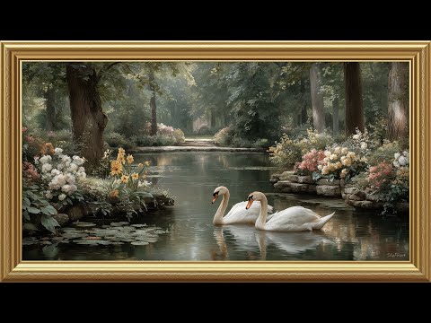 This enchanting oil painting captures a pair of swans forming a heart on a misty, sun-dappled pond. Surrounded by lush pink roses and floating water lilies, this piece brings a soft, romantic, and "shabby chic" elegance to your home. Specifically designed to turn your Samsung Frame TV or any TV display into a breathtaking floral masterpiece.
