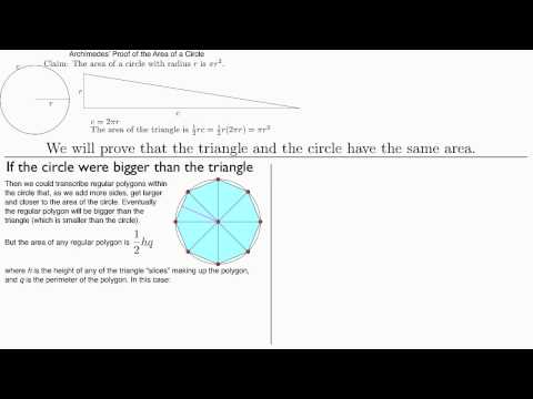Archimedes proved the area formula for a circle by dividing the shape into infinitesimally small pieces. The concept was behind some of his greatest mathematical achievements, but rested on a paradox that wasn't addressed rigorously for thousands of years. Join my Patreon! Or, support me on Ko-Fi with a one-time donation! I skipped the detailed proof in this video - you can find an excellent full explanation of Archimedes' proof of the area formula of the circle by @DanielRubin1 here: **A few clarifications and comments, based on helpful viewer feedback** •While Archimedes is often credited with the invention of the screw style water pump, and it bears his name, evidence shows that this invention existed in Egypt before Archimedes, and he was likely the first to "demonstrate and fully explain its properties." •Another source, cited in Wikipedia, says that the screw may have been an improvement on a similar pump that existed in the hanging gardens of Babylon: (I have not independently vetted this article since it comprises such a small detail in my video) •Some have pointed out that Leibniz was given short shrift in my video. Had I known that this video would go viral, I would have held it back for a week or two to fix that problem! As it is, I hope to cover the Newton/Leibniz controversy in a future video. •It's worth clarifying that parts of the story of Archimedes' death are likely apocryphal, in particular his last words. In the video, I referred to it as a "legend" because there's no question that it's a good story. Some 300 years after Archimedes, Plutarch reported multiple versions of Archimedes' death and his last words. There is probably a version of the truth in there somewhere, but storytelling and myth making surely played a role as well. Time Stamps: 00:00 - Introduction 00:51 - The challenge of curves 01:44 - The area of a circle 03:27 - The paradox of infinitesimals 04:42 - History after Archimedes 06:45 - Calculus in the modern world 07:11 - Archimedes' life and death _____ The inspiration for this video comes from: Infinite Powers: How Calculus Reveals the Secrets of the Universe, by Steven Strogatz I highly recommend this book to anybody interested in reading more. It's a great read, even if you're not a "math person." ______ Additional Resources: Calculus Reordered: A History of the Big Ideas, by David M. Bressoud Infinitesimal: How a Dangerous Mathematical Theory Shaped the Modern World, by Amir Alexander Isaac Newton, by James Gleick _____ The Works of Archimedes: Résumé des leçons données à l'École royale polytechnique sur le calcul infinitésimal, par M. Augustin-Louis Cauchy: :/12148/bpt6k62404287/ Newton's Fluxions: Archimedes' proof from The Measurement of a Circle: Annotation of the proof from the American Mathematical Society: More information about Archimedes' inventions and myths: Circular Reasoning: Who First Proved That C Divided by d Is a Constant? by David Richeson Discussion of who gets credit for which ideas: Additional information ("all of Europe knew less in 1500 than Archimedes did on the day he died"): _____ Thank you to @JonathanWhitmore for feedback on the script and providing the Manim animation at 00:12. Thank you to @JoelSimser for technical help and valuable editing feedback on this video. Note: Amazon links are affiliate links which help support the channel at no additional cost to you.