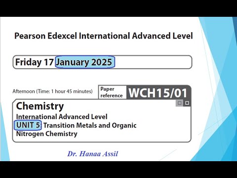 Unit 4 January 2021 - A2 Chemistry Edexcel - Dr Hanaa Assil 1 година