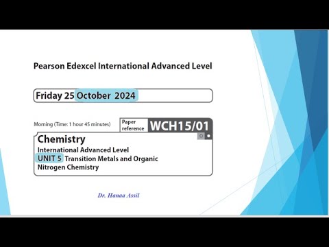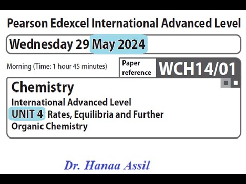 Unit 4 May 2024 - A2 Chemistry Edexcel - Dr. Hanaa Assil 1 година