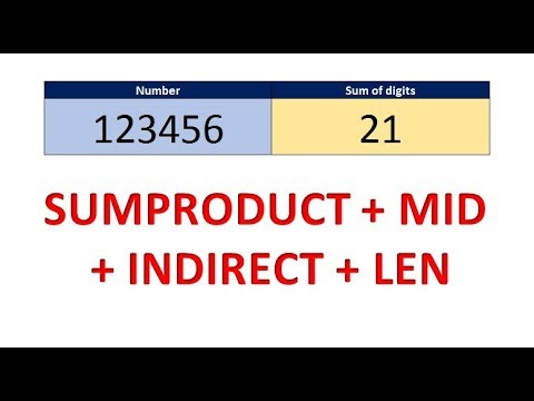 Download Excel File: Learn how to sum the digits of a number. See 4 examples. See Method 1 that will work in all versions of Excel. See a method that works in Office 365. And See two methods that will work if you have decimals.