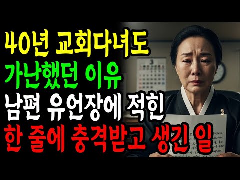 🙏 하나님의 큰 축복이 임하기 전에 반드시 나타나는 8가지 징조를 경험한 71세 김해숙 권사님의 생생한 간증입니다. 45년간 교회를 다니며 모든 예배에 빠짐없이 참석했던 분이 갑작스런 시험들로 절망의 끝자락에 섰을 때, 성경을 통해 깨달은 놀라운 진리를 나누어 드립니다. 📖 오늘 말씀드린 8가지 징조: 모든 문이 막히는 것 같을 때 (출애굽기 14:10-11) 믿었던 사람들이 떠나갈 때 (요한복음 6:66-69) 이유 없는 영적 공격이 심해질 때 (욥기 1:8) 과거의 상처가 다시 아플 때 (창세기 50:15) 영적으로 무기력해질 때 (열왕기상 19:4) 물질적 어려움이 극심해질 때 (열왕기하 4:1-2) 사람들의 오해와 비난이 쏟아질 때 (사무엘상 16:7) 기도해도 하늘이 닫힌 것 같을 때 (마태복음 15:23-28) 🔥 핵심 성경구절: - 욥기 1:21-22 - 욥의 고백 - 히브리서 8:10-11 - 새언약의 약속 - 요한일서 2:27 - 성령의 가르치심 - 욥기 42:5 - 하나님을 직접 뵙게 됨 - 에스겔 36:26-27 - 새 마음, 새 영 - 히브리서 10:17 - 죄 사함의 확신 💡 이 영상은 특히 다음 분들께 도움이 됩니다: - 현재 어려운 상황에 계신 분들 - 하나님의 뜻을 분별하고 싶은 분들 - 성경적 위로와 소망이 필요한 분들 - 새언약 복음을 깊이 알고 싶은 분들 🙏 여러분의 소중한 간증과 기도제목도 댓글로 나눠주세요. 구독과 좋아요는 더 많은 분들에게 복음을 전하는 힘이 됩니다. #하나님축복 #성경 #기도 #복음 #예수 🔔 구독과 좋아요는 더 많은 분들에게 이 은혜로운 간증을 전하는 데 큰 힘이 됩니다. 📺 매일주님과함께에서는 신앙생활의 실제적인 간증과 은혜로운 이야기들을 나누고 있습니다. ✨말씀 동행 멤버십✨에 함께해 주시면, 더 많은 이들에게 진정한 복음을 나누는 사역이 확장됩니다. 여러분의 동참이 복음의 씨앗이 되어 열매 맺게 됩니다. 🙏 🌱작은 씨앗 (₩3,990/월) 하루 130원, 복음을 전하는 씨앗이 되어주세요. 🌸사랑의 헌신 (₩7,990/월) 하루 260원, 사랑의 향기로 복음을 널리 전합니다. 💡함께해 주시는 모든 분들 덕분에 진정한 복음을 전하는 사역이 이어집니다. 🙏 -------------------------------------------------------------------------------------------- ⚠️ 본 영상은 실제 신앙 사연을 바탕으로, 누구나 겪을 수 있는 갈등과 회개의 순간을 성경 말씀과 삶의 고민 속에서 재구성한 창작 콘텐츠입니다. ⚠️ 개인정보 보호를 위해 영상 속 인물과 장소는 모두 가상의 설정으로 각색되었습니다. ⚠️ 채널의 모든 콘텐츠는 저작권의 보호를 받으며, 무단 사용 시 법적 제재를 받을 수 있습니다. ※ 본 영상은 정통 기독교 신앙 안에서 진정한 복음을 전하고 신앙적 성찰을 돕기 위한 목적으로 제작되었습니다. ※ 사이비 교리나 특정 종교 단체와는 전혀 관련이 없습니다.