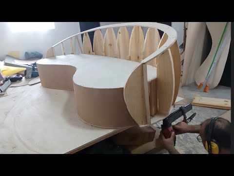 Диван изготовлен, соблюдя все предпочтения заказчика. Радиус задней части дивана повторяет радиус стены. The sofa is made, observing all the preferences of the customer. The radius of the back of the sofa repeats the radius of the wall.