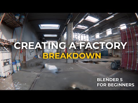 Kickstart your Blender 5 learning journey with a full beginner friendly environment course, released for free on YouTube through an unlock system. Once Part 2 unlocks, you will be able to download the free asset pack that supports the entire course: 👉 ▶️ Get Addon: Creating 3D Environments Addon: With these assets, you will learn how to build an industrial factory environment step by step, using modeling, materials, lighting, Geometry Nodes and the Blender 5 compositor to enhance your final renders. The course is based on real industrial locations, filmed on site to capture the authentic look and atmosphere of these environments. You will also work with more than 150 scanned assets that help bring the scene to life. Unlock System This course unlocks itself as the views grows. There are 15 parts, and each new part becomes available when the previous video reaches a specific view milestone. 🔓 We reached 6000 views, so Part 6 is now unlocked. The next milestone is 7,000 views to unlock Part 7 Part 2: Part 3: Part 4: Part 5: Let’s build this scene together. Chapters: 00:00 - 02:18 Introduction 02:19 - 04:27 Installing Blender 5 04:28 - 07:56 Blender interface 07:57 - 09:04 Blender viewport navigation 09:05 - 14:26 Vertices, Edges and Faces 14:27 - 15:47 Making a room shape 15:48 - 19:25 Adding edge lines 19:26 - 20:34 Extruding windows 20:35 - 22:59 Putting camera in position, adding window holes 23:00 - 24:09 Organizing Outliner 24:10 - 25:09 Part 1 overview