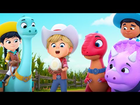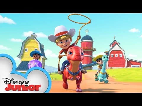 The gang's all here! Watch Dino Ranch on Disney Junior! Dino Ranch, the ultimate playground, is a working farm and dinosaur sanctuary. Home to the tight-knit Cassidy family which includes adopted siblings Jon, Min, and Miguel. All are training to be ranchers under the sure and steady guidance of their Pa and Ma, Bo and Jane. Accompanied by their own distinctive dinosaurs, Jon’s speedy raptor Blitz; Min’s big-hearted Brontosaurus Clover; and Miguel’s tiny but mighty triceratops Tango, they discover the thrill of ranch life while navigating the great outdoors through unforeseen challenges. As the three little Dino Ranchers learn the ropes, every day is filled with unpredictable adventures, because at Dino Ranch, trouble can loom like a T-Rex on a moonless night! dinoranch disneyjunior