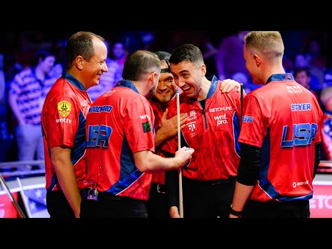 Fedor Gorst takes on Mickey Krause in singles action on day four of the 2024 BetOnline Mosconi Cup in Orlando, USA. #mosconicup #matchroompool #nineball #pool #wnt