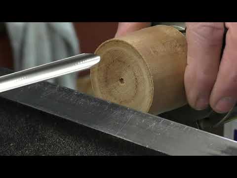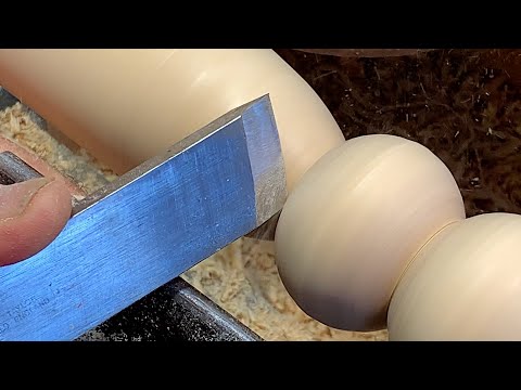 Turning a Curtain Pole Finial using only two tools in real speed full unedited video. These are a standard pattern. In the video I use an Ashley Iles 1” Skew and 1/2” Spindle Gouge. The sizing gauge is homemade. Approx 1450 RPM and the tool rest is slightly above center.