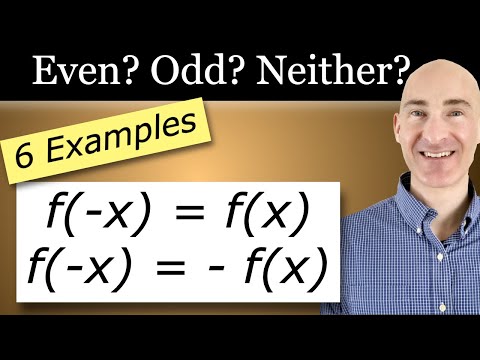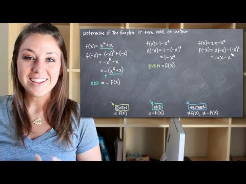 This algebra 2 and precalculus video tutorial explains how to determine whether a function f is even, odd, or neither algebraically and using graphs. This video contains plenty of examples and practice problems using variables and constants. First, plug in -x into the equation and see if the sign changes. If all signs change, it's an odd function. If they all remain the same, then it's an even function. If some change while others do not, the function is neither even or odd. For graphs, even functions are symmetric about the y axis. For odd functions, the symmetry exists about the origin. For circles with even and odd properties, it does not pass the vertical line test and is therefore not a function. Domain and Range - Free Formula Sheet: Functions - Free Formula Sheet: _______________________________ Algebra Review: Functions and Graphs - Video Lessons: Final Exam and Test Prep Videos: