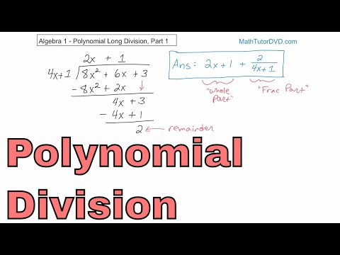 More Lessons: Twitter: In this lesson, you will learn how to divide one polynomial by another. This process is called polynomial long division, and it follows a similar procedure to the long division of whole numbers and decimals. First, we will review how to divide whole numbers, including the concept of a remainder. We will apply these ideas to dividing polynomials using a very similar algorithm. Once we get to the end and have the remainder of the division, we will learn how to write the complete answer as the whole part plus the fractional remainder. Finally, we will use the answer to check our work using multiplication. This process will be revisited in a future lesson where we use synthetic division to perform the division of polynomials.