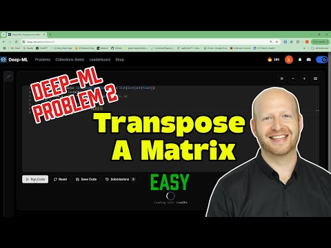 In this video I show you how to solve Deep-ML Problem 1: Matrix-Vector Dot Product in two ways: using explicit native python, and a faster way using numpy. Hi everybody today we're gonna do some more ML coding so we're here at Deep ML com and we're going to start with the first problem matrix vector dot product so this problem what we need to do oops so reset this over here so we didn't see what happened what we're gonna do is we're gonna write a Python function that computes the dot products between the matrix and vector the function should return a list result with the resulting vector if the operation is valid we'll talk about what that means our minus 1 if the matrix dimensions don't match a matrix can be dotted with a vector these are also the matrix would be a list of lists over here only if the number of columns is equal to the length of the vector so we'll see how to check that for example if an n by m matrix requires an m length vector and here we have kind of an explanation of what that is so what we want to do we got a list of lists over here and the Matrix B so there's actually two ways to do this I'll show you the more explicit Python way and I'll show you how to solve this also using non pie which makes everything much much easier so let's first solve this using the more explicit way cause I think that's a little learn a little more from that so we'll have our output list and now we're gonna start to populate it with the resulting dot products so we're gonna iterate through the matrix a and now what we're gonna do is try to try to keep track of the sum so this would be the resulting the resulting output and we're gonna start set it to zero cause we're gonna see we're gonna start adding elements to it and now I'm gonna do the length of the vector B we can't multiply them cause we will just have a mismatch of the shape this is exactly what they want so if if any of these rows is not equal to the length of the beam they want us to return minus 1 as you can see over here turn minus 1 otherwise let's start doing this multiplication so I'm gonna use a cool thing that I like called zip and python so what we wanna do is we'll take the matrix element and the row element and will zip which means we're iterating across both the row and the vector d at the same time and we're making sure that these two are matched so it will take the corresponding bro element and the vector element and now what we want to do is multiply them and add them to our sum so this is how we do a matrix multiplication take each element from the row vector of the matrix and from sorry this is my bad I have typo here from the row element and from the vector element got him having steak over there now we fixed it and what we're gonna do is we add them to the sum and then we add this output of the sum to our to our output vector and then we just return it so as we if we recap we started with an empty list now we go over each row and then we start with the sum if the shape is there's a shape mismatch we turn minus 1 as we needed to we iterate through elements from both the row and our vector B and then this is how we do the dock product we sum up all the multiplications and then we add this to our output ring and that's that so let's see if this runs properly and it takes a little bit of time and yes it does this also includes a test case where the shapes don't match for example this one now let's see how we can do this in Python in Nun Pi which is a little more efficient because here we're doing double for loop in Python which is very slow so what we're gonna do is we're gonna import Nun Pi as and P and what we're gonna do is we're gonna try to convert both of these into an umpi array so we'll convert a into an Pi array and will convert the into an empire now if we have a very special situation where there's a list of list that one of them is a different size this line will fail in this case we would need to handle this with a certain handling of exceptions but it's not gonna happen over here but just so you know this might fail if there's a list of lists that isn't the same shape shape what they designed this for is to make sure that the matrix is valid so what we're gonna do is check the shapes so we want the shape of the the number of columns which is multiplied by B so this is the shape of each row and the shape of B and this is what we want to be compatible if it's not we need to take return minus 1 otherwise what we do is we need to just return a a times B when you do this with with the at sign this is how you do matrix multiplication with non pine and we actually need to convert this to list so we're going to return it as a list cause we see we need to return has a list this is a little more compact and it's more explicit also what this is checking and usually this is gonna be way way faster than a 44 looking python