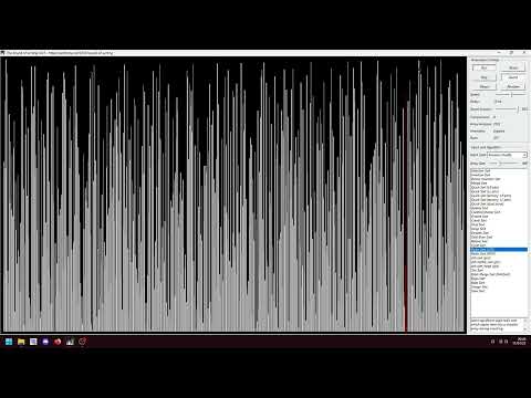 Visualization and "audibilization" of 15 Sorting Algorithms in 6 Minutes. Sorts random shuffles of integers, with both speed and the number of items adapted to each algorithm's complexity. The algorithms are: selection sort, insertion sort, quick sort, merge sort, heap sort, radix sort (LSD), radix sort (MSD), std::sort (intro sort), std::stable_sort (adaptive merge sort), shell sort, bubble sort, cocktail shaker sort, gnome sort, bitonic sort and bogo sort (30 seconds of it). More information on the "Sound of Sorting" at