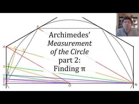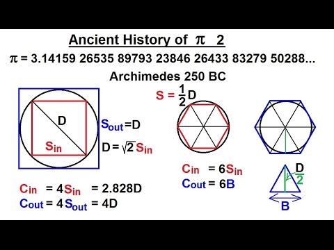 Discusses Archimedes' demonstration that the area of a circle is πr^2, or in his terms, the same as the area of a triangle whose height is the radius and whose base is the circumference.