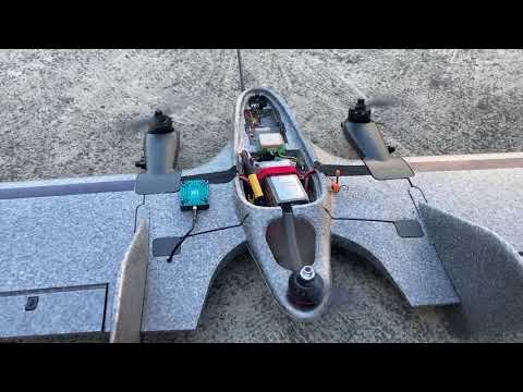 Testing auto takeoff and auto landing with short waypoint mission in between. The weathervane function and be observed during vtol landing. Cruise speed set to 18m/s with a 6m/s headwind in places.