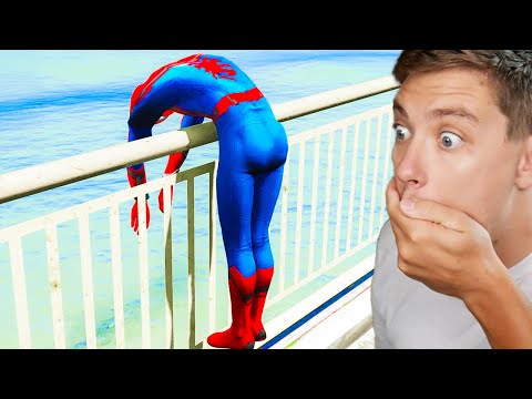 Reacting To GTA 5 Iron Spiderman Falling off Highest Buildings - Episode 05 (Euphoria Ragdolls) 🔻Original Video🔻 #reaction #gta5 #gta5ragdolls