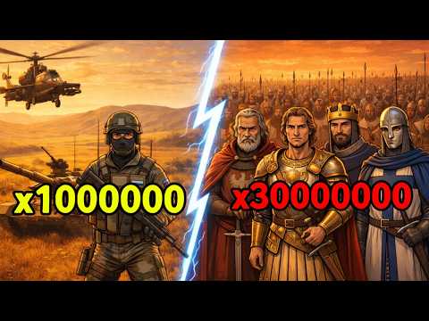 ТЕЛЕГРАМ КАНАЛ - Если Вы захотите поддержать меня, вот ссылочка на ДОНАТИК Что Если 1 Миллион Современных Солдат Встретили 50 Миллионов Древних Воинов? Представьте: современная армия в 1 миллион человек внезапно оказывается лицом к лицу с 50-миллионной ордой древних воинов. Соотношение 1 к 50. Технологии XXI века против бесконечных волн мечей и копий. Может ли 1 миллион с современным оружием победить 50 миллионов с мечами и луками? Или количество рано или поздно задавит качество? ⚠️ ДИСКЛЕЙМЕР: Это полностью вымышленный сценарий, созданный для образовательного анализа военной тактики и сравнения эпох. Видео НЕ изображает реальные события, НЕ является пропагандой и НЕ несёт политического послания. Это спекулятивное "что если" для изучения роли технологий и численности в войне. Создано с уважением к военной истории всех эпох и народов. Не рекомендуется для детей. Рекомендуется родительский контроль.