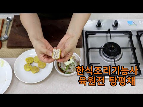 #더본외식산업개발원 #더본코리아 #한식조리기능사 탕평채는 청포묵, 소고기, 미나리에 초간장을 넣어 새콤하게 무쳐낸 음식입니다. 탕평채를 만들 때, 재료마다 다른 요구사항에 맞춰 손질하고 자르는 게 매우 중요하고요. 또 양념한 소고기를 완전히 익히는 것도 중요하니 이 점 유의하며 만들어 보시기 바랍니다~ 스물일곱 번째 강의✏ 탕평채 1. (거두절미한)숙주와 미나리는 길이 4~5cm가 되도록 자르고, 청포묵은 (가로, 세로 두께)×6cm(길이)로 자르기 2. 1번에서 손질한 재료를 끓는 물에 데치고, 숙주와 청포묵엔 소금, 참기름으로 밑간하기 3. 김이 초록색을 띨 때까지 프라이팬에 구워 부수고, 황·백 지단은 (두께)×4cm(길이)로 채 썰어 고명용 재료 준비하기 4. 소고기는 0.2~ 두께로 채 썬 후 간장과 참기름 1t, 설탕과 다진 파, 마늘 1/2t, 깨소금과 후춧가루 한 꼬집 넣어 양념하고 볶기 5. 재료들을 초간장(간장, 설탕, 식초 1:1:1 비율)에 버무리고, 고명을 올리면 완성!