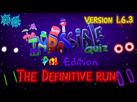 I've beaten this time with a 4:04 due to new strats. There's even a stopwatch in the background for those thinking that I speed up my runs when I don't: NOTE: Glitches are allowed in this category. If you want to see me do a glitchless run then I might do it. I explain the rules I played by and the glitches I used if you open the description. Played on 2/9/2017 100% for this game means to complete all 110 questions as FAST as possible, that means glitches are allowed. The mobile version of the game should NOT be compared to PC runs as there some notable differences between the 2 versions like some questions being different such as and mechanics of the same questions being different where you have to wait for the green option appear in the mobile edition but not in the PC version. I played by these rules: 1. Timing starts when the first question appears and ends when you reach the "complete" screen after using the final skip 2. No tools, hacks, and macros to assist you during the run 3. No speeding up or slowing down the footage 4. No savestates 5. Checkpoints ( . Moron Marks ) are allowed 6. Glitches are allowed Glitch explanations -Question 68: Normally you are supposed to rub the cat until the meter on the right fills up, but for some reason you can just touch the neck of the cat for the meter to fill up. This also works if you touch where the cat's tail starts. I think this is because as you rubbing the cat, you are actually touching the 2 different places where the meter fills up. However it saves about a second if you just leave your finger touching one of the 2 areas where the meter fills up. -Question 84 It's kind of hard to see due to the dark background but I actually get the shooting star from where the brown barrier surrounding the question is. This is because the brown barrier in the mobile edition of the game actually has no hit detection, unlike the computer version of the game which the brown barrier has hit detection and if you touch it, you'll lose a life and start the question over again. This trick saves a fraction of a second over getting the shooting star by not touching the brown barriers. -Question 106: This question is a very annoying auto scroller because if you screw up you'll lose the run or lose tons of time. Towards the end of the auto scroller, I don't take the intended route and skip a part of the road. This is because there is no hit detection in that gray thing I bypassed. The reason why I do this is because it's easier to complete the question this way. This trick doesn't save time however. It's also worth noting that this trick doesn't work on the computer version of the game. Sorry for the dark background I've been speedruning this game on and off since October 2015. I wanted to start speedruning this game because I wanted to speedrun all the Impossible Quizzes as I had decent times in all of them except the mobile editions of TIQ1 and TIQ2. One lunch break in school, my friend Shadow Master, had the mobile game on his phone and he let do some speedruns on it. Soon, I got the game for myself and the rest is history. The time went from 6: to this time of 4: . I'm very satisfied with the run overall because the execution was great, and no mistakes were made except for losing a life at question 96 but that lost me no time. Without any new strats, I think beating this run won't be easy. Game Download IOS: (Note: The game got updated and is significantly different from the one played in the video) Android: Not available Credits: Splapp Me Do for making the game InXile Entertainment for porting the game to mobile Shoutouts: Shadow Master/X Grennn for helping me start speedruning the game, and timing my first speedruns of this game Friends at my school who found optimizations to beat the game a bit faster, and timed some of my early runs. WR from 2/9/2017 to 10/10/2017 You for watching the video EDIT 12/25/2017: Thanks everyone for 1k views! EDIT 2/14/2019: Woah 10k views!
