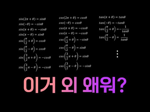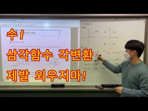 아직도 삼각함수 각 변환을 암기해서 하는 학생들이 많아서 준비해봤습니다! 이 영상으로 빨리 원리 파악해서 다들 각 변환 고수가 되어봅시다!! + 혹시 2π를 넘어갈 때는 아는 범위가 나올 때까지 2π씩 빼가면 됩니다! 00:00 INTRO 00:07 설명에 앞서 00:30 3가지 원리 00:45 1. 변한다 안변한다 01:13 2. 예각취급 02:24 3. 머릿속으로 좌표축을 그리자 03:26 원리 적용하기 #깝혁 #삼각함수 #각변환