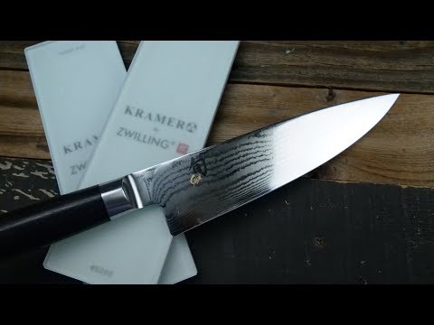 This video shows you how to properly sharpen a double bevel Shun knife on a whetstone.